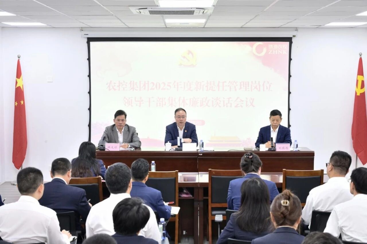2025年12月2日,農(nóng)控集團(tuán)組織召開(kāi)2025年度新提任管理崗位領(lǐng)導(dǎo)干部集體廉政談話(huà)會(huì)議。集團(tuán)黨委書(shū)記、董事長(zhǎng)李鴻斌出席會(huì)議并講話(huà),黨委副書(shū)記劉國(guó)濤主持會(huì)議,紀(jì)委書(shū)記、監(jiān)察專(zhuān)員林文球作集體廉政談話(huà)。相關(guān)部門(mén)負(fù)責(zé)人、新提任領(lǐng)導(dǎo)干部等40余人參加會(huì)議。