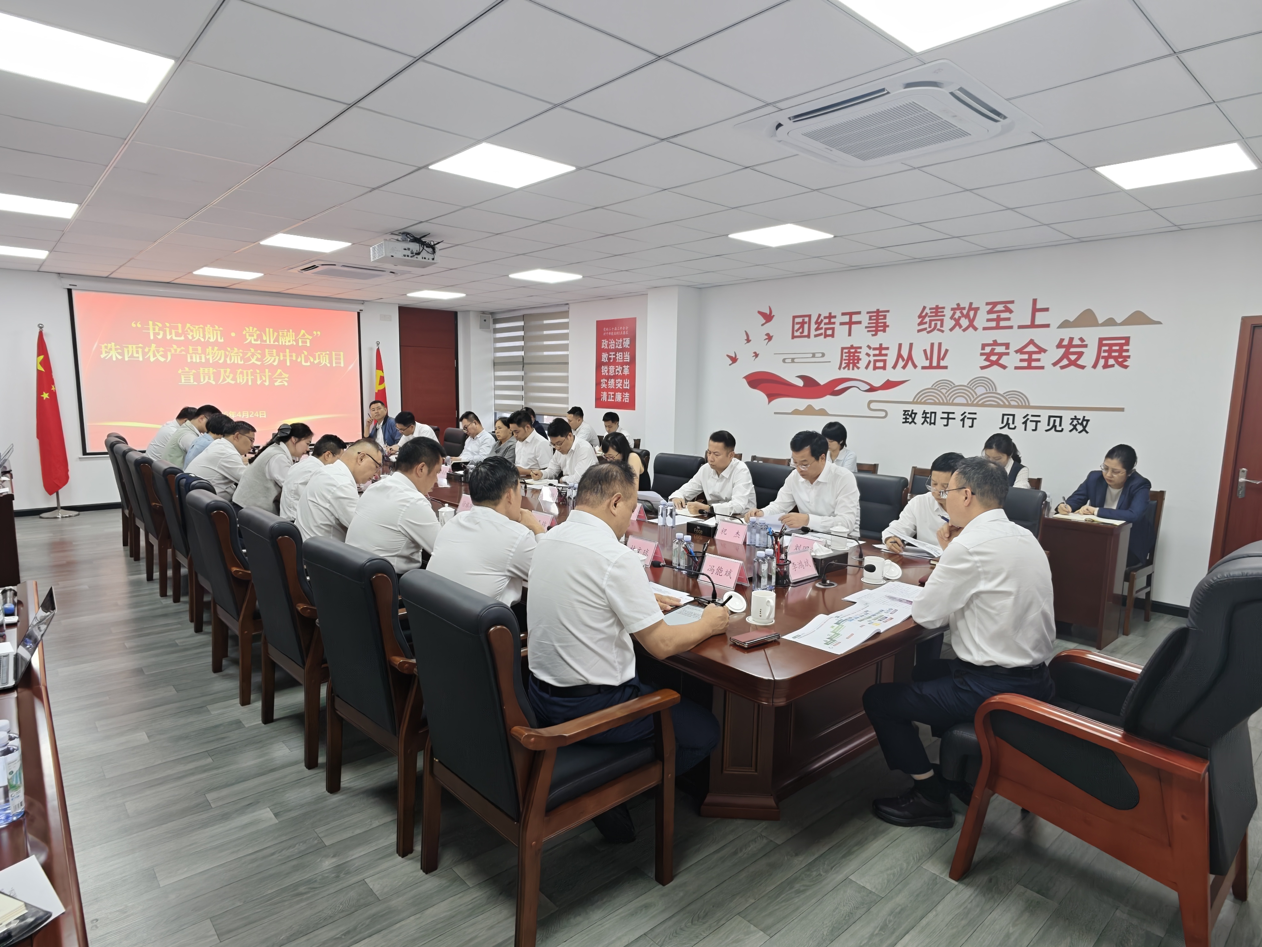 為進(jìn)一步統(tǒng)一思想、凝聚共識(shí),壓實(shí)黨業(yè)融合責(zé)任,全力推動(dòng)項(xiàng)目提速增效、落地見(jiàn)效,4月24日下午,珠海農(nóng)控集團(tuán)召開(kāi)珠西農(nóng)產(chǎn)品物流交易中心項(xiàng)目宣貫及研討會(huì)。集團(tuán)黨委書(shū)記、董事長(zhǎng)李鴻斌主持會(huì)議并講話。
